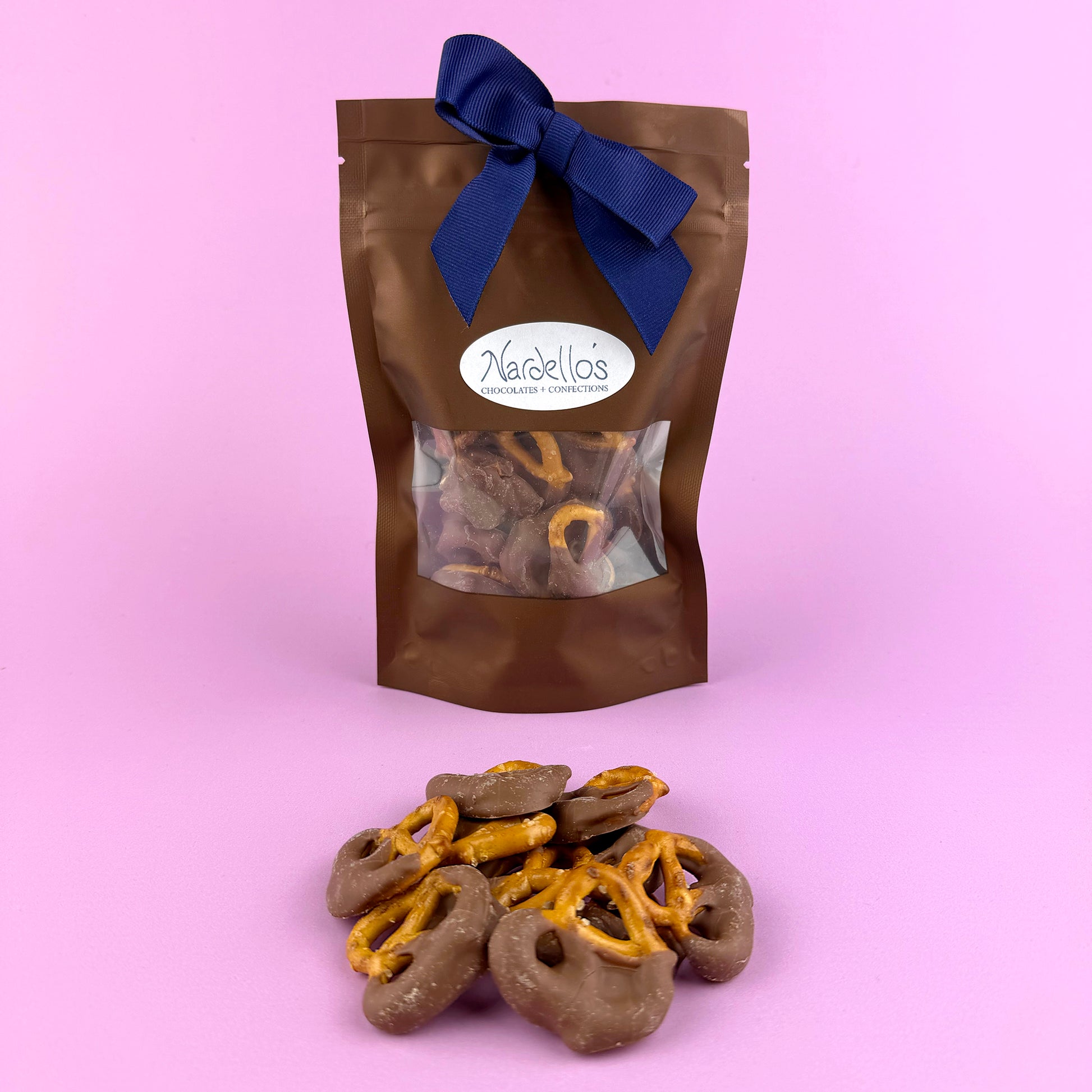 Seriously, who doesn't love Chocolate Covered Pretzels? Available in Milk, Dark or White Chocolate.